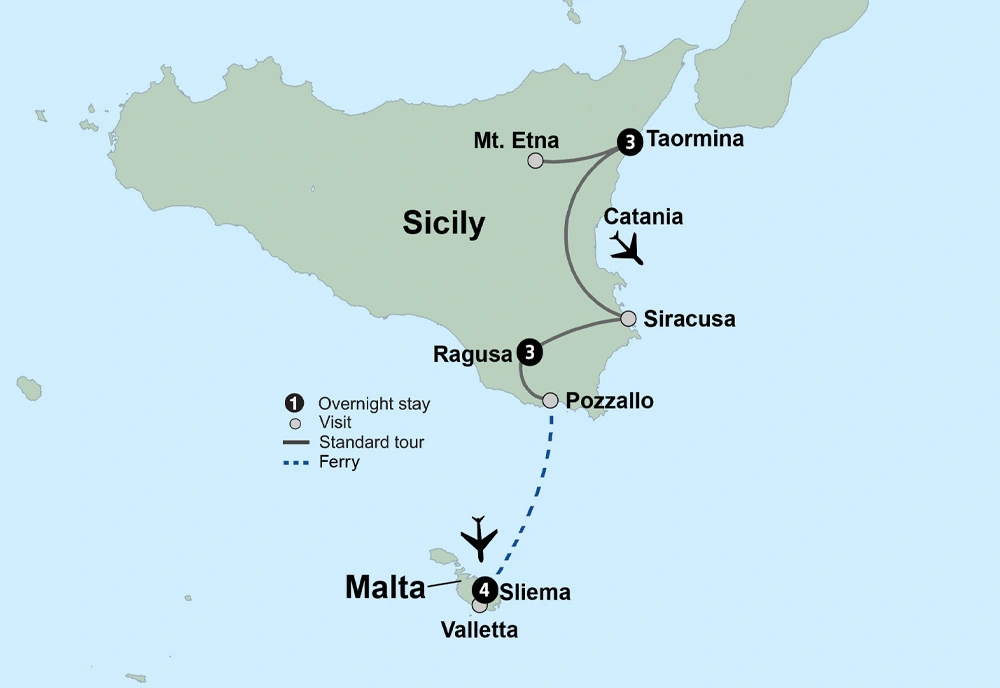 You’re on your way to Malta and Sicily – legendary isles nestled amongst the deep blue waves of the Mediterranean. Discover how ancient traditions blend into modern society as you travel along timeless Italian and Maltese towns.